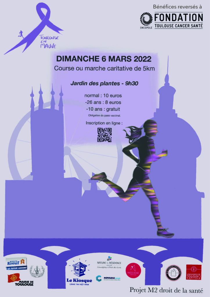C’est avec grand plaisir que la promotion 2021/2022 du Master 2 Droit de la Santé de l’Université de Toulouse 1 Capitole vous annonce le retour de la course caritative annuelle le dimanche 6 mars prochain au Jardin des plantes de Toulouse. Comme pour chaque édition, l’intégralité des fonds récoltés sera reversée à la Fondation Toulouse Cancer Santé.