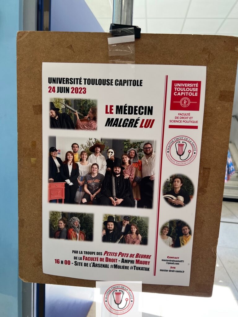 Ce 24 juin 2023, le Master Droit de la Santé organisait avec plusieurs étudiants de la Faculté de Droit de l’Université Toulouse Capitole une représentation du Médecin malgré lui de M. de Molière …